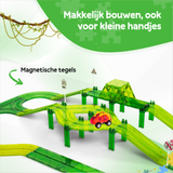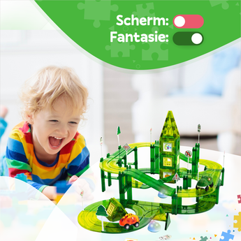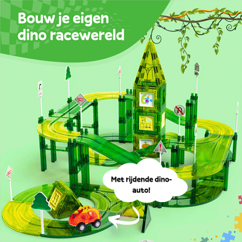 Stell dir vor: Dein Kind baut seine eigene bunte Dino-Rennwelt, von Brücke bis Kurve, ganz allein. Mit dieser Dino Magnetic Tiles Rennbahn werden Kinder zu echten Baumeistern und Rennfahrern. Heute eine hohe Brücke, morgen eine spannende Kurve – alles ist möglich.