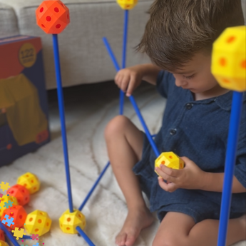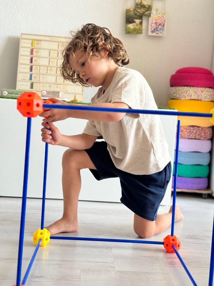 - 122 Teile: 46 Steckkugeln, 76 Stäbe