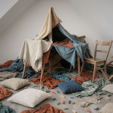 Enthält zwei große Decken (180 x 220 cm) und 12 stabile Klammern. So baust du Festungen, die wirklich fertig sind.